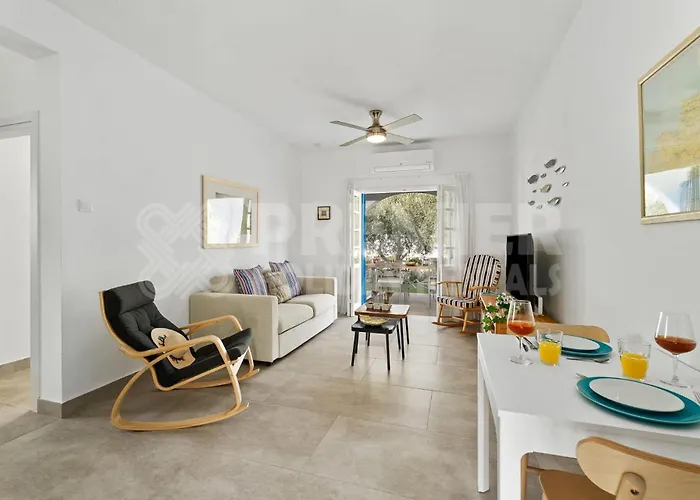 Den 59 m² stora lägenheten ligger cirka 15 minuters bilresa från Thalassa Sjöfartsmuseum. 6 km från den här lägenheten hittar du Klostret i Agia Napa. Gästerna kan nå Grekiska viken, som ligger cirka 10 minuters bilfärd bort.